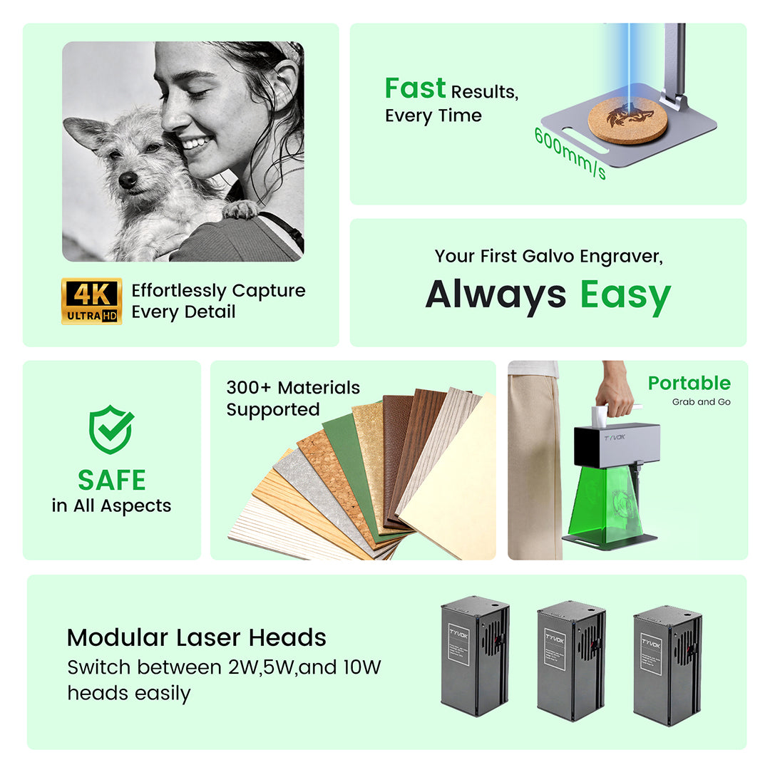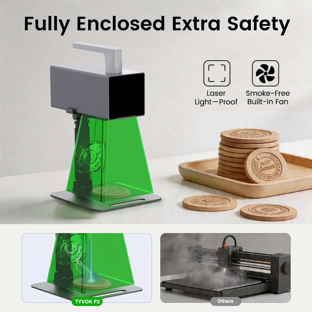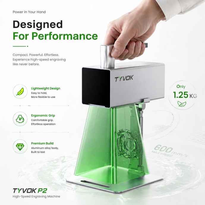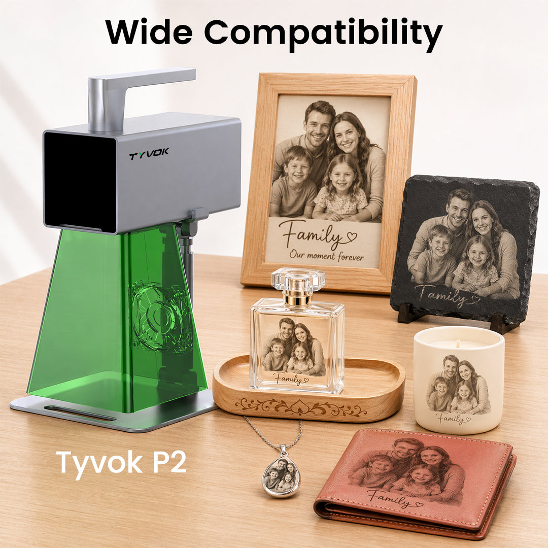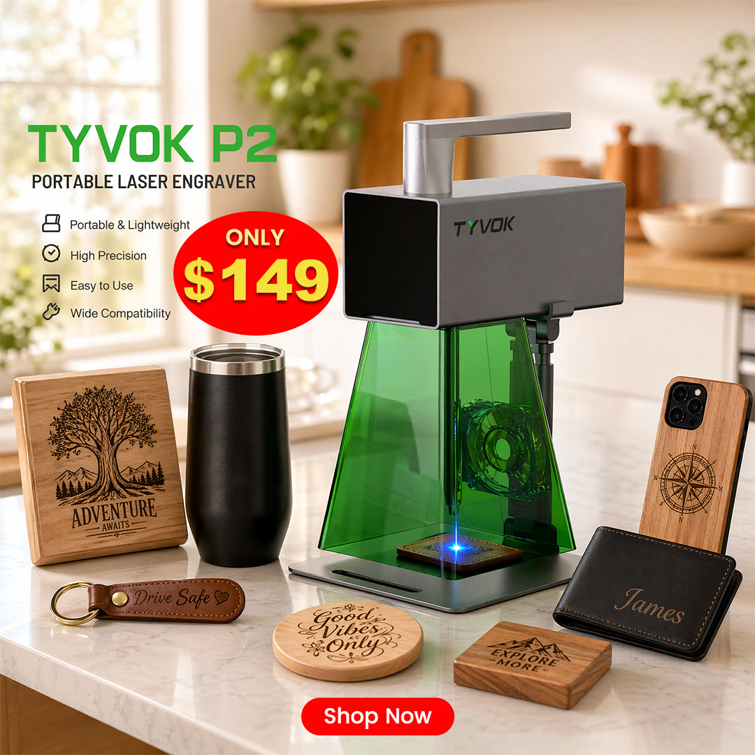 Tyvok's P1 series laser engravers transform ideas into products, enhance classroom learning, create unique gifts, and fuel personal DIY projects. Perfect for turning concepts into high-quality items for sale, engaging students, crafting memorable presents, or enjoying creative fun, Tyvok's machines offer endless possibilities for innovation.