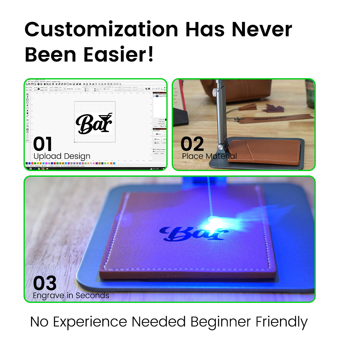 Precise detailing and clean results on leather for premium custom products.
