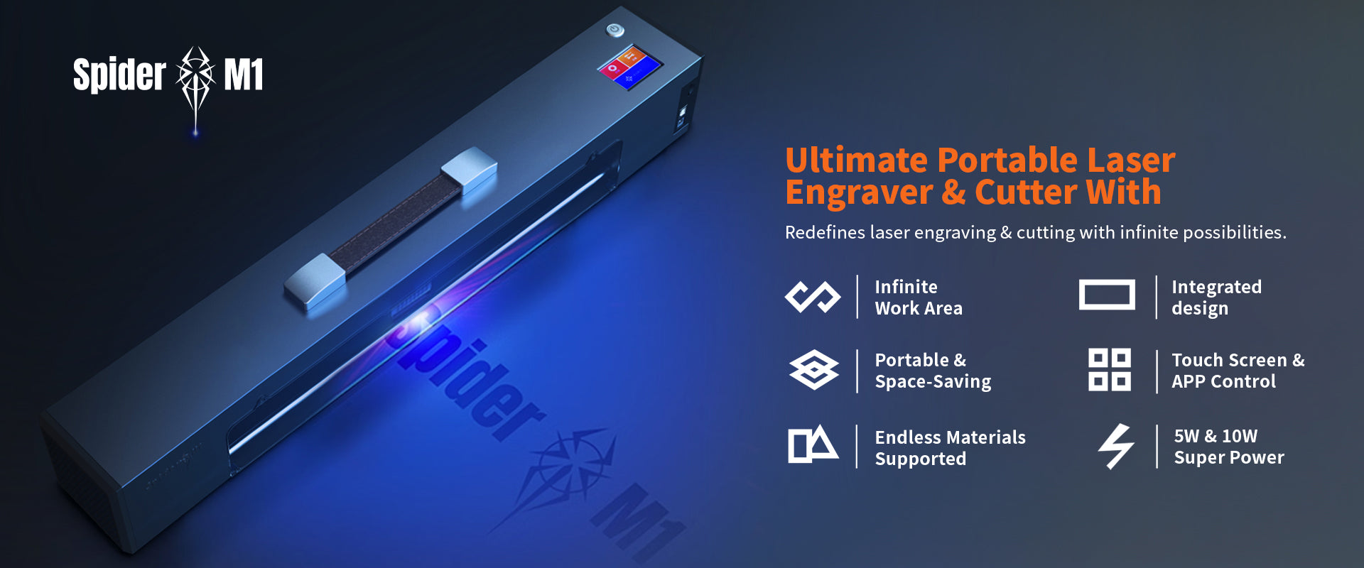 Spider M1 は、ユーザーに最大限の自由度を提供する最も強力なレーザー彫刻機であり、さまざまな材料にパターンを彫刻したり、プレートを切断したりできます。