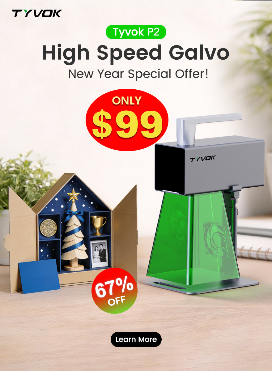 The Tyvok P2, the world’s first modular head-swap galvo laser, is now available for a limited offer at $99, with over 67% off! Shipping starts late January. First come, first served!