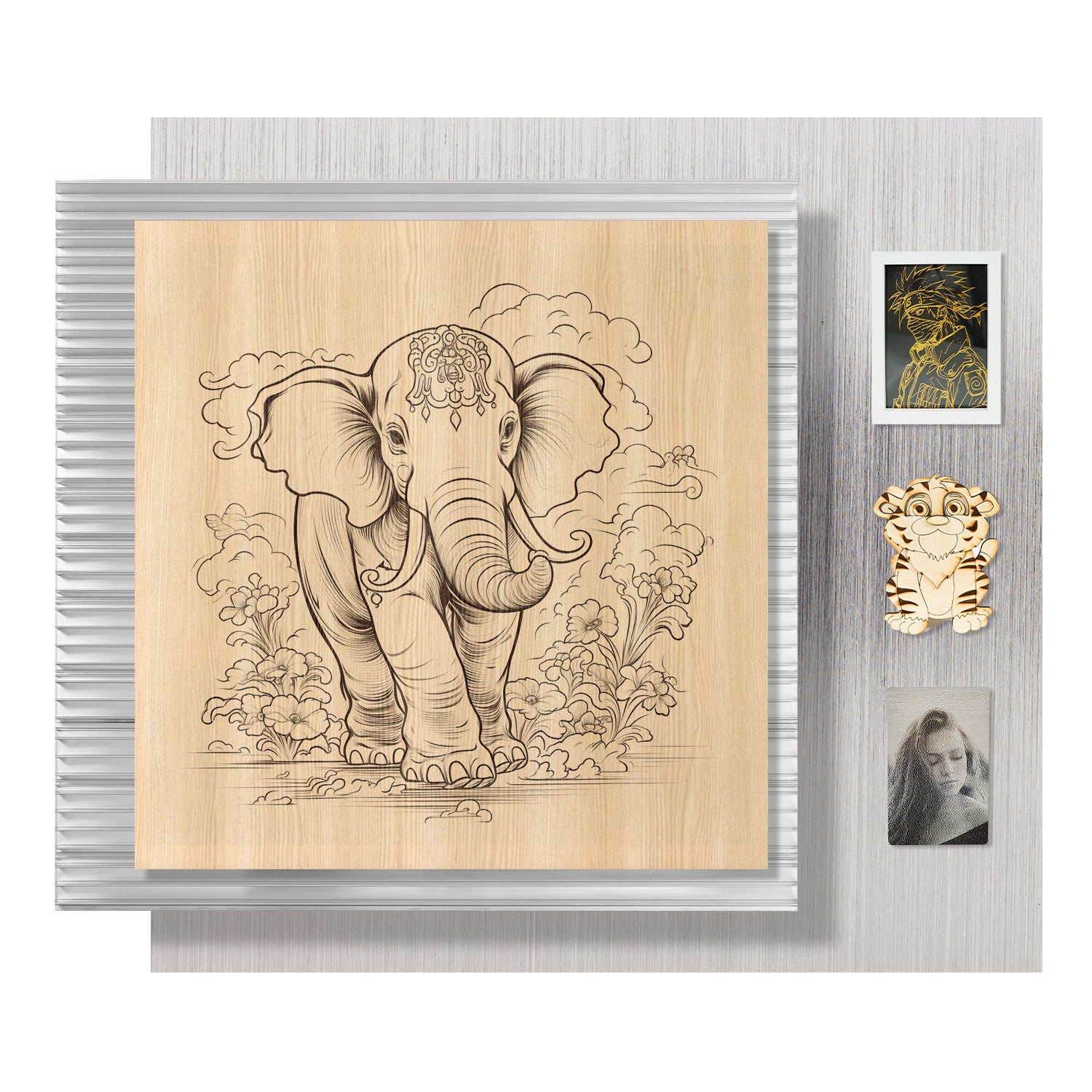 この製品は半導体レーザーと CO2 レーザーの両方をサポートしています。柔軟性を重視して設計されており、頻繁に使用される CO2 レーザーの広い作業領域に対応し、あらゆる彫刻プロジェクトで耐久性と効率的な操作を保証します。