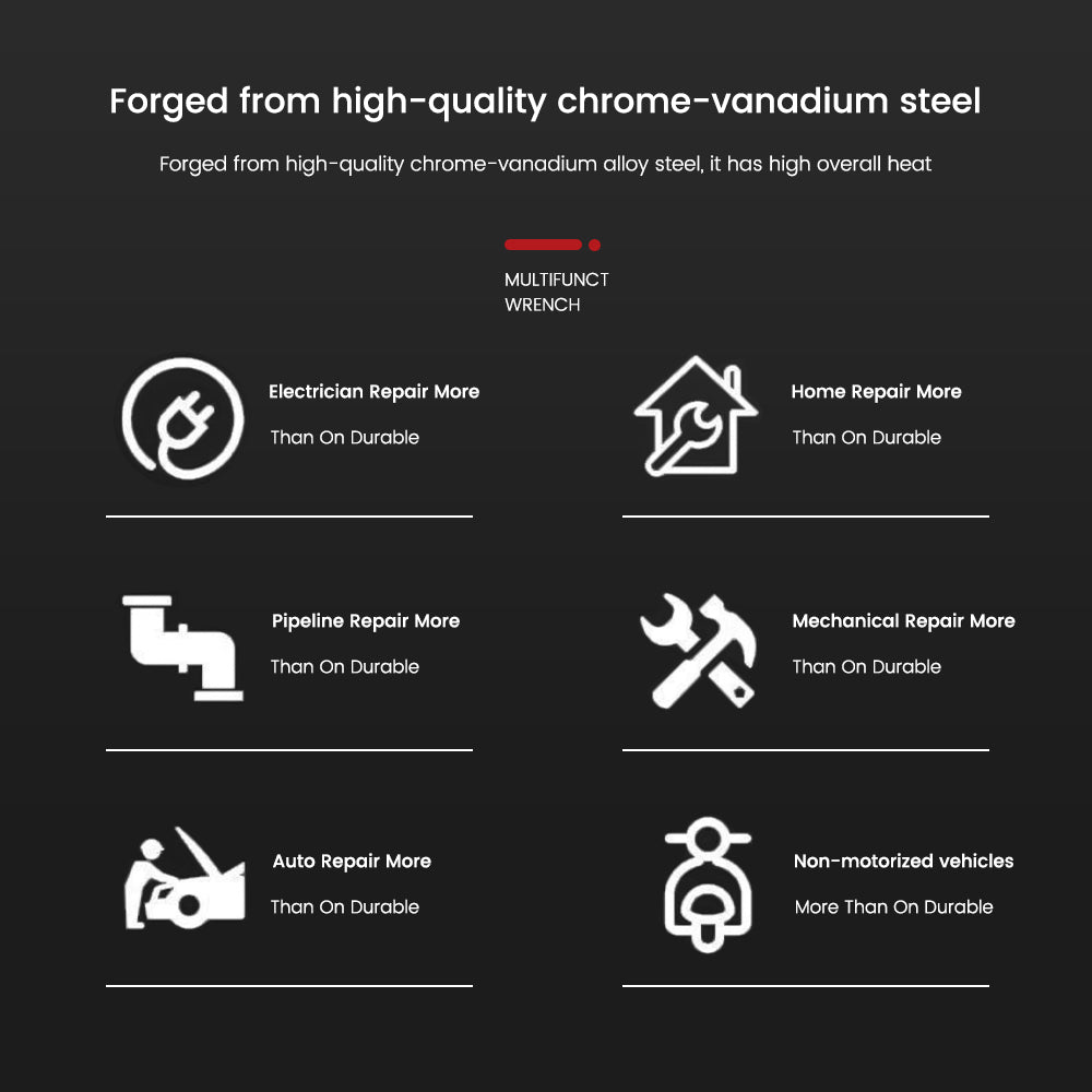 This universal multi-function wrench combines 8 tools in one — compatible with 52 different nut and bolt sizes. The 360-degree rotating head lets you quickly switch between hex, spline, and star shapes without changing tools. Designed for automotive repair, home improvement, and DIY projects, it replaces bulky toolkits with one compact, durable solution.