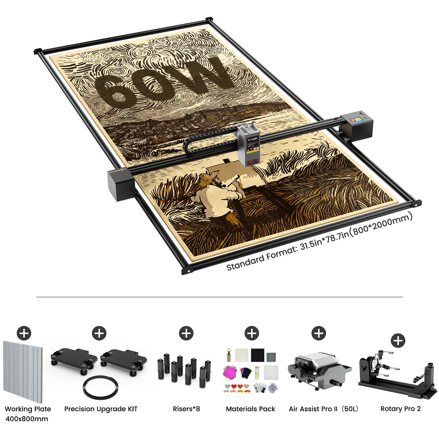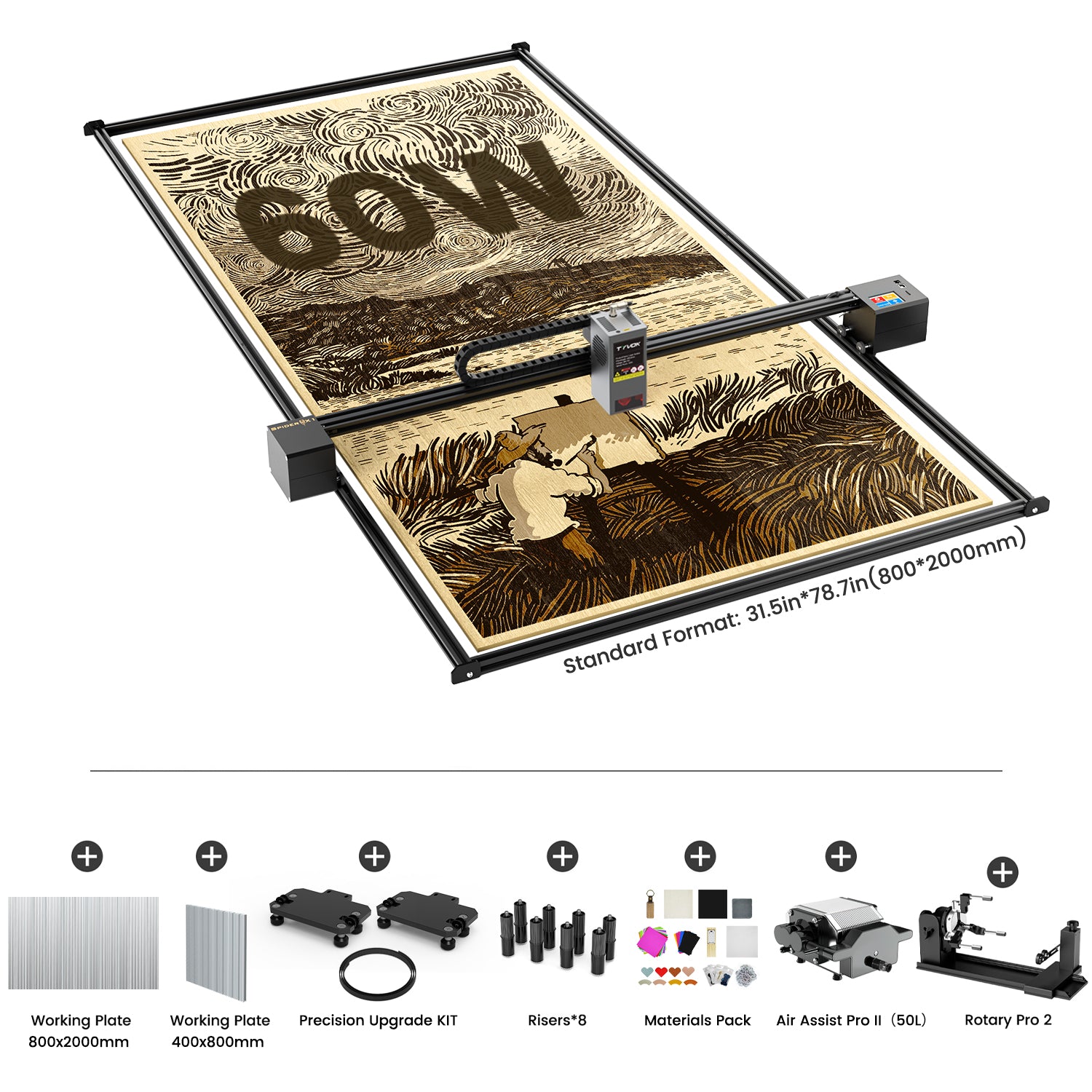 - Axes X et Y extensibles : 800 x 2000 mm ( 31,5" x 78,7")
